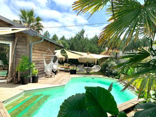 | Maison ambiance cabane exotique climatisée piscine & spa 3 chambres 6 personnes |