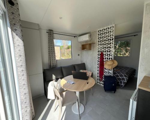 ![]() ![]() ![]() ![]() ![]() ![]() Featuring a private entrance, this air-conditioned mobile home comprises 1 living room, 3 separate bedrooms and 1 bathroom with a shower. The well-equipped kitchenette features a stovetop, a refrigerator, kitchenware and a microwave. This mobile home has a coffee machine, a seating area, a TV and an outdoor dining area. The unit offers 5 beds. |