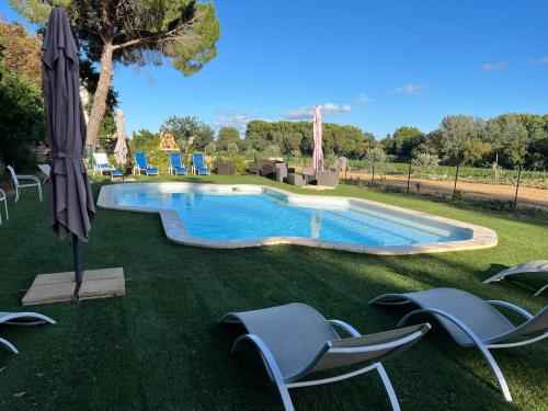 Possédant une piscine, un jardin, une terrasse et connexion Wi-Fi gratuite, l’établissement Domaine de l’Herbe Sainte vous accueille à Mirepeisset et offre une vue sur la piscine. Chaque hébergement est pourvu d'une télévision à écran plat ainsi que d'une salle de bains privative avec une douche et un sèche-cheveux. La cuisine possède un réfrigérateur, un lave-vaisselle et un four. Un micro-ondes, une plaque de cuisson et un grille-pain sont également à votre disposition, de même qu’une machine à café et une bouilloire. Vous pourrez profiter d’un barbecue sur place et pratiquer la randonnée et la pêche à proximité. Vous séjournerez à respectivement 28 km et 29 km de ces lieux d’intérêt : Abbaye de Fontfroide et Les neuf écluses de Fonsérannes. L'aéroport le plus proche (Aéroport de Béziers - Cap d'Agde) est à 43 km. |