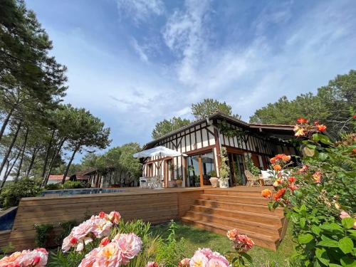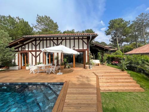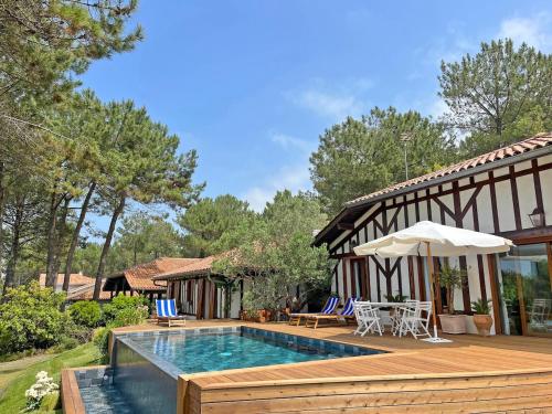 | Villa Hau-Oli, 4 chambres, spacieuse, piscine privée, grand jardin fleuri vue golf et 8min à pied de la plage |