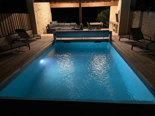 Situé à Montagne, l’hébergement La villageoise propose une piscine extérieure ouverte en saison, un sauna et un bain à remous. Il dispose également d’une terrasse offrant une vue sur la piscine et le jardin. Cet hébergement propose une connexion Wi-Fi gratuite, un jardin, un salon commun et un spa et centre de bien-être. Cette maison de vacances avec climatisation se compose de 4 chambres, d'un salon, d'une cuisine entièrement équipée avec un réfrigérateur et une machine à café, ainsi que de 2 salles de bains avec une douche et un bain à remous. Des serviettes et du linge de lit sont disponibles. Cet établissement dispose d’un barbecue. Vous séjournerez à respectivement 40 km et 40 km de ces lieux d’intérêt : Pont Chaban-Delmas et La Cité du Vin. L'aéroport le plus proche (Aéroport de Bordeaux-Mérignac) est à 54 km. |