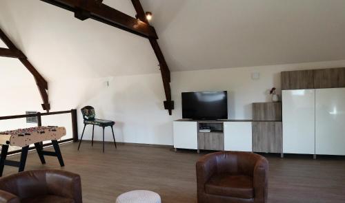 Doté d’une piscine intérieure, l’hébergement Gîte Jet d'eau avec piscine intérieure 30 minutes Versailles se trouve à Montainville, à 18 km de ce lieu d’intérêt : France Miniature. Cette maison de vacances possède une piscine privée, un jardin, un barbecue, un parking privé gratuit et une connexion Wi-Fi gratuite. Disposant d’une terrasse et offrant une vue sur le jardin, cette maison de vacances comprend 2 chambres, un salon, une télévision à écran plat, une cuisine équipée avec un réfrigérateur et un lave-vaisselle, ainsi que 1 salle de bains avec une douche. Cet hébergement met à votre disposition des serviettes et du linge de lit. Un petit-déjeuner continental est servi sur place. L’établissement Gîte Jet d'eau avec piscine intérieure 30 minutes Versailles possède une aire de jeux pour enfants, ainsi que des installations de sports nautiques. Vous séjournerez à respectivement 20 km et 25 km de ces lieux d’intérêt : Golf de Saint-Germain et Jardins de Versailles. L'aéroport le plus proche (Aéroport de Paris - Orly) est à 51 km. |