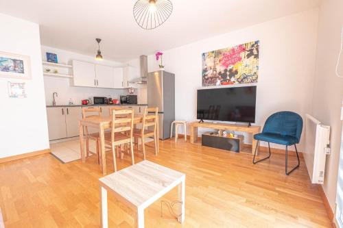 Situé à Montévrain, l’hébergement *Disneyland-Paris* 5 personnes, Parking, Wifi met à votre disposition une connexion Wi-Fi gratuite et offre une vue sur la ville. Cet hébergement est installé à 1,1 km de : Val d'Europe RER Station. Il propose une terrasse et un parking privé gratuit. Cet appartement compte 1 chambre, une cuisine avec un réfrigérateur et un lave-vaisselle, une télévision à écran plat, un coin salon, ainsi que 1 salle de bains comportant une baignoire. Des serviettes et du linge de lit sont disponibles. Vous séjournerez à respectivement 5,1 km et 36 km de ces lieux d’intérêt : Disneyland Paris et Gare de Lyon. L'aéroport le plus proche (Aéroport de Paris - Roissy - Charles-de-Gaulle) est à 26 km. Un service de navette aéroport payant peut être assuré par l’établissement. |