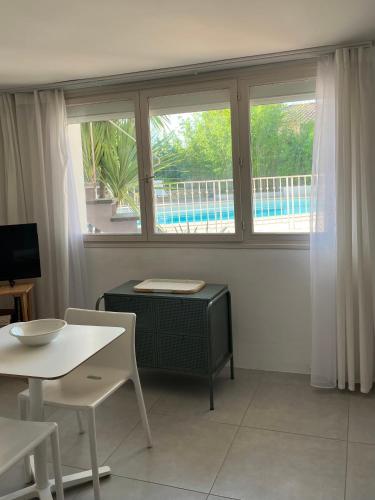 Grand studio vue sur la piscine |