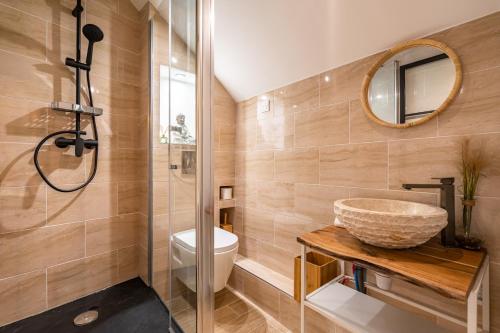 ![]() ![]() This apartment's special features are the hot tub and the spa bath. Guests can make meals in the kitchen that features a refrigerator, kitchenware, a microwave and a toaster. The apartment features a private entrance, a tea and coffee maker, heating and a flat-screen TV with cable channels. The unit has 1 bed. |