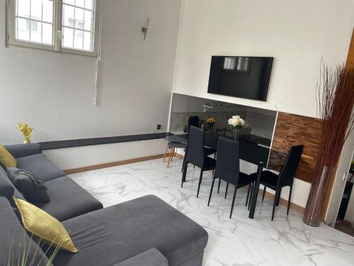 L’hébergement Charme et tout confort prêt stade de France JO se situe à Montmagny, à 8 km de ce lieu d’intérêt : Stade de France. Il possède une terrasse, une connexion Wi-Fi gratuite et un service de concierge. Cet appartement propose un patio. Cet appartement se compose de 1 chambre, d'un salon, d'une cuisine entièrement équipée avec un réfrigérateur et une machine à café, ainsi que de 1 salle de bains avec une douche et un sèche-cheveux. Cet hébergement met à votre disposition des serviettes et du linge de lit. L’établissement comprend un barbecue. Vous séjournerez à respectivement 14 km et 14 km de ces lieux d’intérêt : Salle de spectacles La Cigale et Arc de Triomphe. L'aéroport le plus proche (Aéroport de Paris - Roissy - Charles-de-Gaulle) est à 17 km. |
