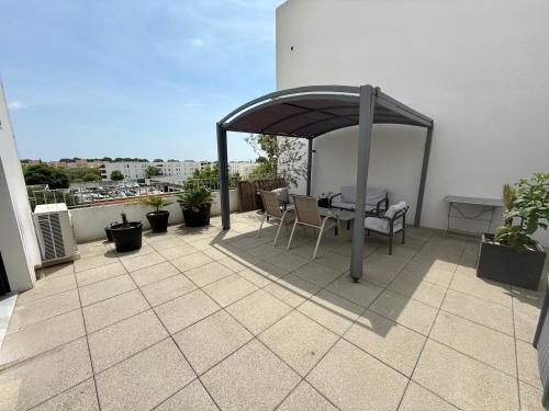 Offrant une vue sur la ville, l’hébergement Le Refuge Du Sud possède une terrasse et un patio, à environ 3,8 km de ce lieu d’intérêt : Opéra Orchestre national Montpellier Occitanie. Cet hébergement avec climatisation est installé à 800 mètres de : GGL Stadium. Vous pourrez profiter d’une connexion Wi-Fi gratuite et d’un parking privé disponible sur place. Cet appartement compte 2 chambres, une cuisine avec un réfrigérateur et un lave-vaisselle, une télévision à écran plat, un coin salon, ainsi que 1 salle de bains comportant une douche. Des serviettes et du linge de lit sont à disposition. Vous séjournerez à respectivement 4 km et 6 km de ces lieux d’intérêt : Cathédrale Saint-Pierre de Montpellier et Hôtel de ville de Montpellier. L'aéroport le plus proche (Aéroport Montpellier Méditerranée) est à 13 km. |