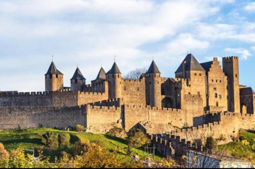 L-Echapée Belle Maison de village climatisée de 45m2 à proximité de Carcassonne,1 chbre à l-étage vue panoramique sur les pyrénées, cuisine équipée,1Salon,1 sdb, Wifi, Parking gratuit, Netflix,Canal sat, Fauteuil massant |