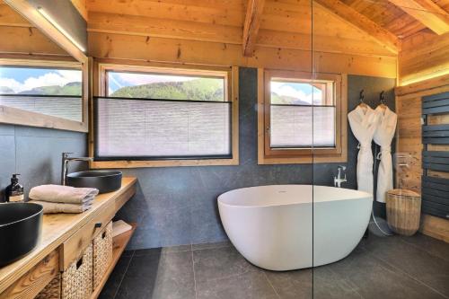 Chalet              The hot tub and fireplace are the special features of this chalet. The well-fitted kitchen has a refrigerator, a dishwasher, an oven and a microwave. The spacious chalet features a washing machine, a tea and coffee maker, tumble dryer, as well as a TV. | ||
