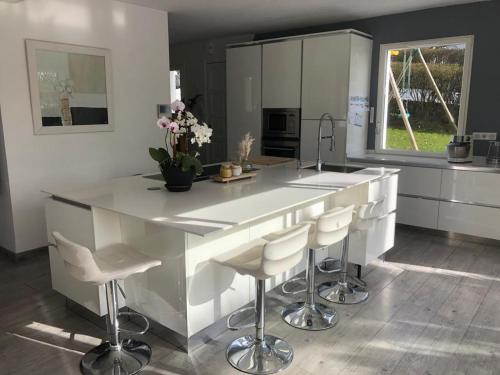 L’hébergement une maison avec piscine chauffée vous accueille à Mouguerre, à respectivement 14 km et 24 km de ces lieux d’intérêt : Gare de Biarritz La Négresse et Église Saint-Jean-Baptiste. Il propose une connexion Wi-Fi gratuite, une piscine extérieure ouverte en saison et la climatisation. Cette maison de vacances comprend une piscine privée, un jardin et un parking privé gratuit. Disposant d’une terrasse et offrant une vue sur le jardin, cette maison de vacances possède 3 chambres, un salon, une télévision à écran plat, une cuisine équipée avec un lave-vaisselle et un four, ainsi que 1 salle de bains avec une douche. Des serviettes et du linge de lit sont à votre disposition. Vous séjournerez à respectivement 24 km et 38 km de ces lieux d’intérêt : Gare de Saint-Jean-de-Luz et Gare d'Hendaye. L'aéroport le plus proche (Aéroport de Biarritz-Pays basque) est à 10 km. |