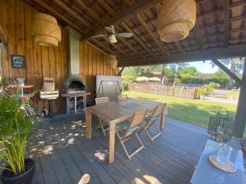 Situé à Moustey, l’hébergement Maison typique en lisière de forêt au calme met à votre disposition une connexion Wi-Fi gratuite et offre une vue sur le jardin. Cette maison de vacances possède une piscine privée, un jardin et un parking privé gratuit. Cette maison de vacances comporte 3 chambres, 1 salle de bains, du linge de lit, des serviettes, une télévision à écran plat, une cuisine entièrement équipée et une terrasse offrant une vue sur la piscine. Vous séjournerez à 45 km de ce lieu d’intérêt : Lac de Biscarrosse. L'aéroport le plus proche (Aéroport de Bordeaux-Mérignac) est à 61 km. |
