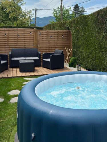 Situé à Mouxy, l’hébergement Villa Moussarde offre une vue sur la montagne. Il possède une terrasse et une connexion Wi-Fi gratuite. Cet hébergement est installé à 7,4 km de : Lac du Bourget. Il comprend un jardin et un parking privé gratuit. Cet appartement avec climatisation comporte 1 chambre, une télévision à écran plat, ainsi qu’une cuisine avec un réfrigérateur et un micro-ondes. L’établissement Villa Moussarde dispose d’un bain à remous. Vous séjournerez à respectivement 16 km et 19 km de ces lieux d’intérêt : Savoiexpo et Fontaine des éléphants. L'aéroport le plus proche (Aéroport de Chambéry - Savoie) est à 8 km. |
