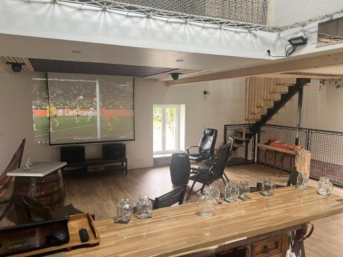 Possédant une piscine, un jardin, un bar et connexion Wi-Fi gratuite, l’établissement La Grange de Saint-Martin / Les écuries du Chateau St-Martin vous accueille à Mozac et offre une vue sur le lac. L’établissement propose des hébergements avec vue sur le cours d’eau, une terrasse, un coin salon et une télévision à écran plat par satellite. Vous bénéficierez d’une cuisine entièrement équipée avec un réfrigérateur et un lave-vaisselle, ainsi que d'une salle de bains privative avec une douche un four, un micro-ondes et un minibar sont également à votre disposition, de même qu’une machine à café et une bouilloire. Un petit-déjeuner à la carte est servi sur place. Vous séjournerez à respectivement 14 km et 15 km de ces lieux d’intérêt : Centre d'expositions et des congrès Polydome et Gare de Clermont-Ferrand. L'aéroport le plus proche (Aéroport de Clermont-Ferrand - Auvergne) est à 18 km. |