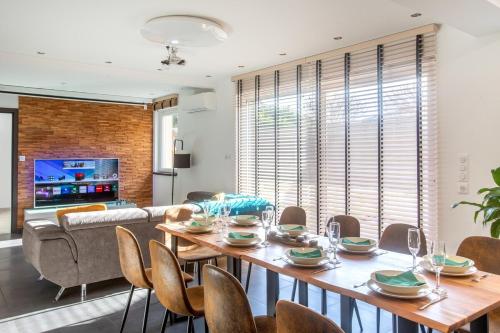 L’hébergement Eclipse SPA jeux Cinema Colmar se situe à Muntzenheim et possède un bain à remous. Cet appartement possède un parking privé gratuit, un service de concierge et une connexion Wi-Fi gratuite. Cet appartement avec climatisation se compose de 4 chambres, d'un salon, d'une cuisine entièrement équipée avec un réfrigérateur et une machine à café, ainsi que de 3 salles de bains avec un bidet et une douche. Une télévision à écran plat avec les chaînes du satellite, un lecteur Blu-ray et une station d'accueil pour iPod sont à disposition. Sur place, vous trouverez un espace bien-être qui propose des massages, ainsi qu’un bain à remous. Un service de location de vélos est disponible sur place. Vous séjournerez à respectivement 10 km et 11 km de ces lieux d’intérêt : Parc des expositions et des congrès de Colmar et Maison des Têtes. L'aéroport le plus proche (EuroAirport Mulhouse) est à 64 km. |