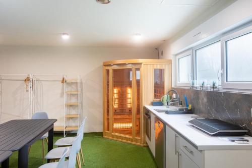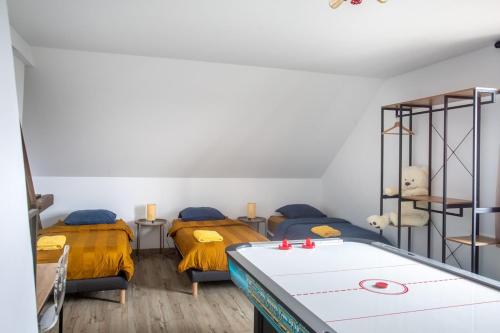Situé à Muntzenheim, l’hébergement ESPLANADE Maison spa jeux cinéma Colmar propose une piscine privée et une connexion Wi-Fi gratuite. Cet hébergement met à votre disposition un billard, une table de ping-pong et un parking privé gratuit. Proposant un lecteur Blu-ray, cette maison de vacances comporte une cuisine avec un réfrigérateur, un lave-vaisselle et un four, un salon avec un coin salon et un coin repas, 3 chambres, et 3 salles de bains avec une douche et un bain à remous. Une télévision à écran plat est disponible. Vous pourrez vous détendre au spa et centre de bien-être contenant une piscine intérieure, un sauna et un bain à remous ou dans le jardin comprenant une aire de jeux pour enfants et un barbecue. Vous pourrez profiter d'une terrasse bien exposée. Vous séjournerez à respectivement 10 km et 11 km de ces lieux d’intérêt : Parc des expositions et des congrès de Colmar et Maison des Têtes. L'aéroport le plus proche (Aéroport de Strasbourg Entzheim) est à 62 km. |