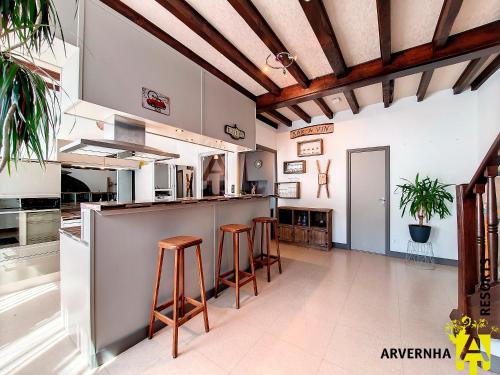 Situé à Murol, l’hébergement La Grande Hirondelle met à votre disposition une connexion Wi-Fi gratuite et offre une vue sur la montagne. Cet hébergement est installé à 25 km de : Puy de Sancy. Il propose une terrasse et un parking privé gratuit. Cette maison de vacances comporte 3 chambres, une cuisine avec un réfrigérateur et un four, ainsi que 2 salles de bains avec une douche, un sèche-cheveux et un lave-linge. Des serviettes et du linge de lit moyennant des frais supplémentaires. Vous séjournerez à respectivement 36 km et 37 km de ces lieux d’intérêt : Université Blaise Pascal et Cathédrale Notre-Dame de l'Assomption. L'aéroport le plus proche (Aéroport de Clermont-Ferrand - Auvergne) est à 42 km. |