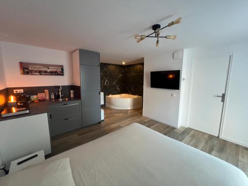 ![]() ![]() The hot tub and spa bath are the special features of this apartment. In the well-equipped kitchen, guests will find a stovetop, a refrigerator, kitchenware and a microwave. The apartment features a private entrance, a coffee machine, a dining area, a wardrobe, as well as a flat-screen TV with streaming services. The unit has 1 bed. |