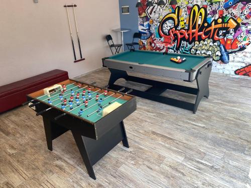 Situé à Nice, l’hébergement Diamond Villa 5 Star - NICE offre une vue sur la ville. Il comprend une piscine extérieure ouverte en saison, un jardin, une plage privée et une connexion Wi-Fi gratuite. Cet hébergement met à votre disposition un billard, une table de ping-pong et un parking privé gratuit. Cette villa avec climatisation se compose de 4 chambres, d'un salon, d'une cuisine entièrement équipée avec un réfrigérateur et une machine à café, ainsi que de 3 salles de bains avec une douche et des articles de toilette gratuits. Une télévision à écran plat avec les chaînes du satellite, un lecteur Blu-ray, une console de jeux et un lecteur CD sont à votre disposition. Cet établissement dispose d’un barbecue. Sur place, vous trouverez une terrasse et un salon commun. Vous séjournerez à respectivement 4,8 km et 6,4 km de ces lieux d’intérêt : Monastère de Cimiez et Gare de Nice-Ville. L'aéroport le plus proche (Aéroport de Nice-Côte d'Azur) est à 12 km. |