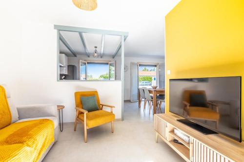 L’hébergement Gemma - 5 min de la Plage se trouve à Ondres, à respectivement 26 km, 35 km et 36 km de ces lieux d’intérêt : Gare de Biarritz La Négresse, Église Saint-Jean-Baptiste et Gare de Saint-Jean-de-Luz. Il propose une connexion Wi-Fi gratuite. Cet hébergement est installé à 2,5 km de : Plage d'Ondres. Il possède un jardin et un parking privé gratuit. Disposant d’une terrasse et offrant une vue sur le jardin, cette maison de vacances possède 2 chambres, un salon, une télévision, une cuisine équipée avec un réfrigérateur et un lave-vaisselle, ainsi que 1 salle de bains avec une douche. Cet hébergement met à votre disposition des serviettes et du linge de lit. Vous séjournerez à respectivement 49 km et 50 km de ces lieux d’intérêt : Gare d'Hendaye et Centre de Congrès - Foire-Expo Ficoba. L'aéroport le plus proche (Aéroport de Biarritz-Pays basque) est à 22 km. |