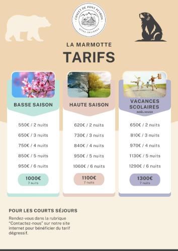 | Informations importantes | Veuillez informer l'établissement Chalet de Pont-Peyron La Marmotte à l'avance de l'heure à laquelle vous prévoyez d'arriver. Vous pouvez indiquer cette information dans la rubrique « Demandes spéciales » lors de la réservation ou contacter directement l'établissement. Ses coordonnées figurent sur votre confirmation de réservation. Hébergement géré par un particulier |