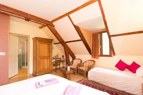 ![]() ![]() ![]() The sauna and fireplace are the special features of this double room. The double room offers a private entrance, a tea and coffee maker, a terrace with garden views as well as a private bathroom featuring a walk-in shower. The unit offers 2 beds. |