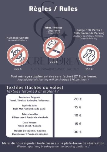 Informations importantes | Les enterrements de vie de célibataire et autres fêtes de ce type sont interdits dans cet établissement. Veuillez informer l\'établissement T2 Neuf, proche Paris & Disneyland à l\'avance de l\'heure à laquelle vous prévoyez d\'arriver. Vous pouvez indiquer cette information dans la rubrique « Demandes spéciales » lors de la réservation ou contacter directement l\'établissement. Ses coordonnées figurent sur votre confirmation de réservation. Un dépôt de garantie d\'un montant de EUR 350 est demandé. Votre hôte le débitera 7 jours avant votre arrivée. Il devra être payé par carte de crédit. Le remboursement devrait être effectué dans les 7 jours qui suivent votre départ. Le dépôt de garantie vous sera entièrement remboursé par virement bancaire, si aucun dommage n\'a été constaté par l\'établissement. |