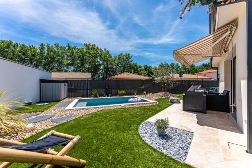 Situé à Parentis-en-Born, l’hébergement Villa Mayana offre une vue sur le jardin. Il comprend une piscine privée et une terrasse. Cette maison de vacances met à votre disposition une connexion Wi-Fi gratuite et un patio. Cette maison de vacances avec climatisation se compose de 3 chambres, d'un salon, d'une cuisine entièrement équipée avec un réfrigérateur et une machine à café, ainsi que de 1 salle de bains avec une douche et un sèche-cheveux. Des serviettes et du linge de lit sont disponibles. Vous pourrez profiter d’un jardin avec un barbecue sur place, et pratiquer la randonnée ainsi que le vélo dans les environs. Vous séjournerez à respectivement 34 km et 36 km de ces lieux d’intérêt : Parc d’attractions La Coccinelle et Kid Parc - Île d’aventures. L'aéroport le plus proche (Aéroport de Bordeaux-Mérignac) est à 83 km. |