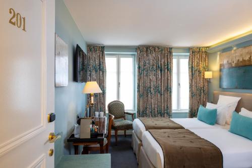 L'Hôtel Le Relais des Halles vous accueille dans une rue piétonne du centre de Paris, à 500 mètres du musée Georges Pompidou. Ses chambres affichent toutes une décoration différente, dans un style d'époque. Elles sont dotées d'une connexion Wi-Fi gratuite. Les chambres et les suites climatisées disposent d'une armoire et d'une salle de bains privative avec une douche, des articles de toilette gratuits et un sèche-cheveux. L'Hôtel Le Relais des Halles Paris sert le petit-déjeuner tous les matins. Tous les types d'hébergement comprennent un plateau/bouilloire pour le thé. L'établissement se trouve à 95 mètres de la station de métro Étienne Marcel, qui mène directement à la cathédrale Notre-Dame. Le centre commercial Les Halles vous attend à 4 minutes de marche. |