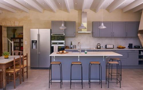 Situé à Périssac, l’hébergement Château Belvédère - Swimming pool, Vineyard & countryside offre une vue sur la piscine. Il comprend une piscine extérieure ouverte en saison, un jardin, une terrasse et une connexion Wi-Fi gratuite. Cet hébergement met à votre disposition un billard, une table de ping-pong et un parking privé gratuit. Cette maison de vacances compte 1 chambre, une cuisine avec un réfrigérateur et un lave-vaisselle, une télévision à écran plat, un coin salon, ainsi que 4 salles de bains possédant une douche. Des serviettes et du linge de lit sont à votre disposition. Vous pourrez pratiquer le vélo dans les environs. Vous séjournerez à respectivement 33 km et 34 km de ces lieux d’intérêt : Stade Matmut Atlantique et Parc des expositions de Bordeaux. L'aéroport le plus proche (Aéroport de Bordeaux-Mérignac) est à 45 km. |