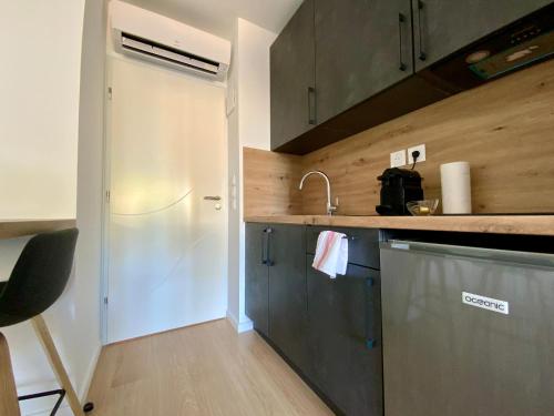 Studio    Ce studio climatisé possède une salle de bains privative, un lave-linge et un coin salon avec une télévision à écran plat. La cuisine entièrement équipée est munie de plaques de cuisson, d'un réfrigérateur, d'un micro-ondes et d'un grille-pain. Doté d'un balcon, cet hébergement dispose également d'une armoire, d'une bouilloire électrique et d'une télévision. Ce logement comprend 1 lit. | ||