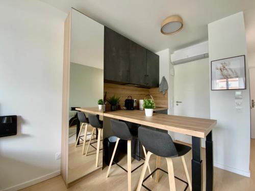 Studio - Accessible aux Personnes à Mobilité Réduite     La cuisine bien équipée est munie de plaques de cuisson, d’un réfrigérateur, d’un micro-ondes et d’un grille-pain. Doté d’une terrasse, ce studio climatisé dispose d'une salle de bains privative, d'un lave-linge et d'une armoire. Ce logement comprend 1 lit. | ||