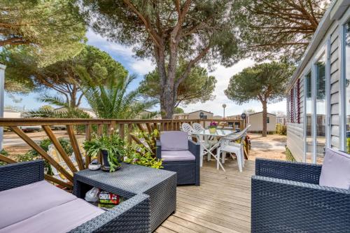 ![]() ![]() ![]() ![]() ![]() ![]() ![]() The air-conditioned mobile home has 3 bedrooms and 2 bathrooms with a shower and a hairdryer. Guests will find a stovetop, a refrigerator, a dishwasher and kitchenware in the well-equipped kitchen. The mobile home also includes a barbecue. Boasting a terrace, this mobile home also features a washing machine, a coffee machine and a TV. The unit has 5 beds. |