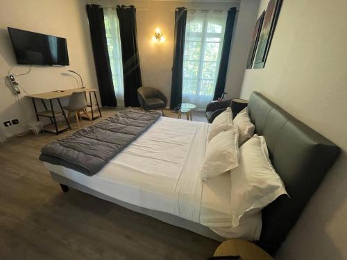 Situé sur les rives de la Basse à Perpignan, à côté de l'emblématique Castillet, l'Hotel De France Perpignan Centre Ville occupe un immeuble datant de 1833, au centre-ville. Cet établissement bénéficie d'un emplacement idéal, à proximité de toutes les attractions professionnelles, touristiques et culturelles. Il propose des chambres climatisées décorées individuellement avec une télévision à écran LCD et une connexion Wi-Fi gratuite. Les chambres de l'Hotel De France Perpignan Centre Ville sont lumineuses et décorées dans des couleurs claires. Chacune est climatisée et comprend une salle de bains privative. Certaines offrent une vue sur le jardin ou la rivière. Vous pourrez savourer un petit-déjeuner buffet tous les matins dans la salle prévue à cet effet, alliant couleurs crème et gris. L'hôtel abrite une réception avec des journaux assurant des services de fax et de photocopie. L'établissement se trouve à 5 minutes à pied de la cathédrale de Perpignan et à 10 minutes du palais des rois de Majorque. Si vous voyagez en voiture, vous pourrez profiter du parking à proximité. |