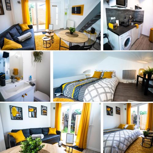 Informations importantes | Les enterrements de vie de célibataire et autres fêtes de ce type sont interdits dans cet établissement. Si vous causez des dommages dans l'hébergement pendant votre séjour, il se peut que vous deviez payer jusqu'à EUR 1000 après votre départ, conformément aux conditions relatives au dépôt de garantie de cet hébergement. The accommodation has a mezzanine bedroom upstairs, access to which is not secure and dangerous for children. As such, I would like to inform travelers and restrict access to this room to allow adults only. However, children can access the accommodation and sleep in the extra bed in the living room on the ground floor (2-seater sofa bed). |