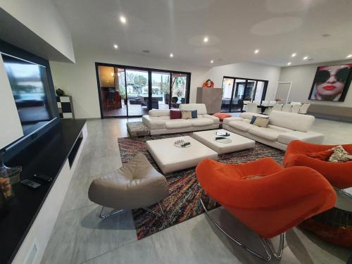 ![]() ![]() ![]() ![]() ![]() ![]() ![]() ![]() ![]() ![]() ![]() ![]() The private pool and hot tub are the standout features of this villa. Boasting a private entrance, this air-conditioned villa features 1 living room, 5 separate bedrooms and 3 bathrooms with a walk-in shower and a bath. Guests will find a stovetop, a refrigerator, a dishwasher and kitchenware in the well-equipped kitchen. The villa also comes with a barbecue. The spacious villa features a flat-screen TV with streaming services, a washing machine, a tea and coffee maker, a seating area as well as garden views. The unit has 7 beds. |