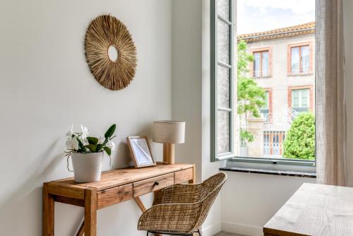 Situé à Peyriac-de-Mer, l’établissement La Grande Maison Chambres d'Hôtes possède une piscine extérieure ouverte en saison, un jardin, une terrasse et une connexion Wi-Fi gratuite dans l’ensemble de ses locaux. Il est installé à respectivement 4,2 km, 12 km et 42 km de : Réserve Africaine de Sigean, Abbaye de Fontfroide et Les neuf écluses de Fonsérannes. Certains hébergements sont pourvus d’un patio offrant une vue sur la ville. Les hébergements possèdent une armoire. Vous bénéficierez d'une salle de bains privative possédant une douche et des articles de toilette gratuits. Certains hébergements possèdent également une cuisine équipée d’un réfrigérateur. Des serviettes et du linge de lit sont fournis. Un petit-déjeuner continental est servi sur place. Vous séjournerez à respectivement 44 km et 45 km de ces lieux d’intérêt : Cathédrale Saint-Nazaire et Arènes de Béziers. L'aéroport le plus proche (Aéroport de Perpignan - Rivesaltes) est à 51 km. |