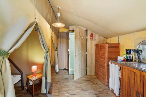 ![]() ![]() ![]() ![]() ![]() La cuisine bien équipée est pourvue de plaques de cuisson, d’un réfrigérateur, d’un micro-ondes et d’ustensiles. La tente est également dotée d’un barbecue. Cette tente dispose d'une salle de bains privative, d'une entrée indépendante, d'une machine à café et d'une terrasse. Ce logement compte 3 lits. |