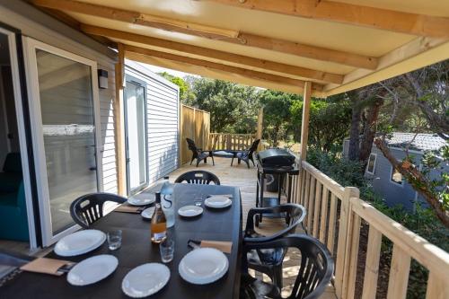 ![]() ![]() ![]() ![]() Boasting a private entrance, this air-conditioned mobile home features 1 living room, 2 separate bedrooms and 1 bathroom with a shower. Meals can be prepared in the well-fitted kitchen, which has a stovetop, a refrigerator, kitchenware and a microwave. The mobile home features a coffee machine, a seating area, as well as a terrace and an outdoor dining area. The unit has 4 beds. |
