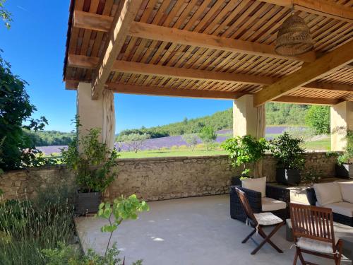 Mas du 18e siècle au calme entouré de champs de lavandes |