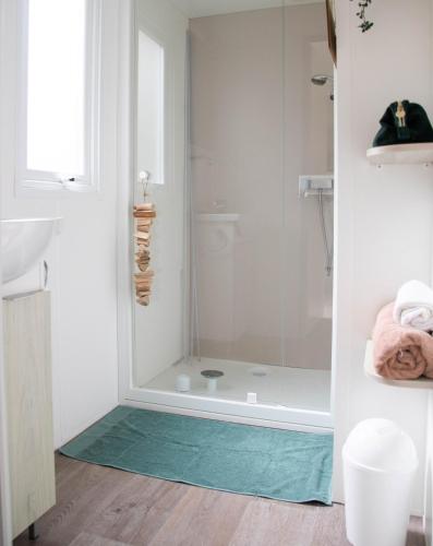 Mobile Home 2 Chambres Confort (4 Personnes)      This mobile home consists of 1 living room, 2 separate bedrooms and 1 bathroom with a shower. Meals can be prepared in the well-fitted kitchen, which is equipped with a stovetop, a refrigerator, kitchenware and a microwave. This mobile home features a washing machine, a coffee machine, a flat-screen TV and a terrace. The unit offers 3 beds. | ||