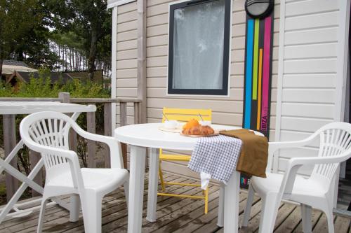 Mobile Home Deux Chambres Confort       This mobile home comprises 1 living room, 2 separate bedrooms and 1 bathroom with a shower. In the well-fitted kitchen, guests will find a stovetop, a refrigerator, kitchenware and a microwave. This mobile home features a washing machine, a coffee machine, a flat-screen TV and a terrace. The unit offers 3 beds. | ||