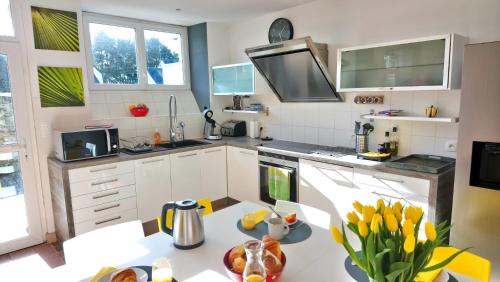 L’hébergement en bord de mer Maison familiale-Surf House, plage de Sainte Barbe vous accueille à Plouharnel, à seulement 2,8 km de ce lieu d’intérêt : Plage de Kerhillio. Il comprend un jardin, une terrasse et une connexion Wi-Fi gratuite. Cet hébergement offre une vue sur le jardin et est installé à respectivement 1,7 km et 15 km de : Gare SNCF de Plouharnel et Gare de Quiberon. Cette maison de vacances se compose de 4 chambres, d'un salon, d'une cuisine entièrement équipée avec un réfrigérateur et une machine à café, ainsi que de 2 salles de bains avec une douche et un sèche-cheveux. Des serviettes et du linge de lit moyennant des frais supplémentaires. Vous séjournerez à respectivement 18 km et 30 km de ces lieux d’intérêt : Pointe du Conguel et Lorient Bretagne Sud Expo-Congrès. |