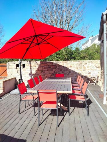 | L’hébergement Longère 5 mn de l'océan avec piscine privée vous accueille à Plouhinec, à seulement 1,1 km de ce lieu d’intérêt : Plage de Saint-Julien. Il comprend une piscine extérieure ouverte en saison, un salon commun et une cuisine commune. Cette villa comprend une piscine privée, un jardin, un barbecue, un parking privé gratuit et une connexion Wi-Fi gratuite. Disposant d’une terrasse et offrant une vue sur la mer, cette villa possède 5 chambres, un salon, une télévision à écran plat, une cuisine équipée avec un réfrigérateur et un lave-vaisselle, ainsi que 2 salles de bains avec une douche. Des serviettes et du linge de lit moyennant des frais supplémentaires. Vous pourrez pratiquer le vélo dans les environs. Vous séjournerez à respectivement 36 km et 36 km de ces lieux d’intérêt : Musée départemental breton et Gare de Quimper. |
