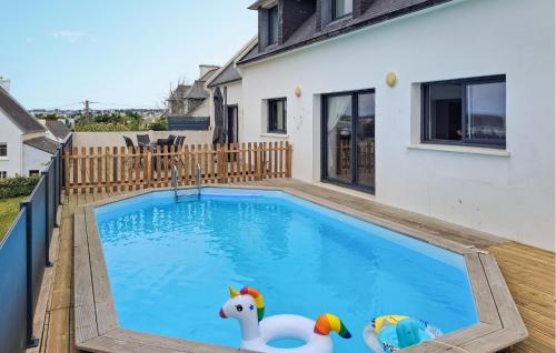 | Situé à Plouhinec, l’hébergement Maison Avec Piscine Vue Mer possède une piscine privée. Cette maison de vacances offre une vue sur la mer et possède une piscine, un jardin ainsi qu’une connexion Wi-Fi gratuite. Cette maison de vacances possède une terrasse, 4 chambres, un salon, ainsi qu’une cuisine bien équipée avec un réfrigérateur et un lave-vaisselle. Une télévision est à disposition. Vous séjournerez à respectivement 900 mètres et 36 km de ces lieux d’intérêt : Plage de Kersiny et Musée départemental breton. L'aéroport le plus proche (Aéroport de Lorient Bretagne Sud) est à 104 km. |