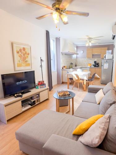 T3 clim, TV, ART, familial, 50m du port, cuisine équipée et jeux de société |