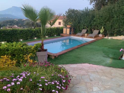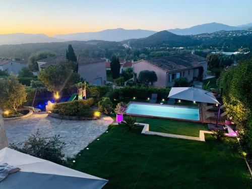 Situé à Porticcio, l’hébergement RINESA II offre une vue sur la montagne. Il possède une piscine extérieure ouverte en saison, un jardin, une terrasse et une connexion Wi-Fi gratuite. Offrant une vue sur la piscine et sur le jardin, cet hébergement est installé à 3 km de : Plage de la Viva. Cet appartement avec climatisation se compose de 2 chambres, d'un salon, d'une cuisine entièrement équipée avec un réfrigérateur et une machine à café, ainsi que de 1 salle de bains avec une douche et un sèche-cheveux. Des serviettes et du linge de lit sont à disposition. Vous séjournerez à respectivement 12 km et 25 km de ces lieux d’intérêt : Port d'Ajaccio et Tour de la Parata. L'aéroport le plus proche (Aéroport d'Ajaccio - Napoléon Bonaparte) est à 4 km. |