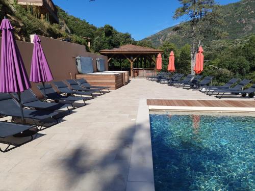 Situé dans le Golfe de Porto, le camping Casa Del Torrente propose des hébergements indépendants dotés d'une terrasse privée. Il se trouve au bord de la rivière U Portu, à 2,5 km de la plage de Porto. Offrant une vue sur la montagne, les chalets et les gîtes possèdent tous un coin salon avec un canapé. Les salles des bains sont privatives et pourvues d'une douche et de toilettes. La connexion Wi-Fi est gratuite. Tous les chalets disposent d'une cuisine entièrement équipée, et vous pourrez profiter d'un barbecue sur place. Une pizzeria se situe à 400 mètres. Un restaurant corse est à 800 mètres. Situé à 1,5 km du village de Porto, ce camping bénéficie d'une plage privée au bord de la rivière. Vous pourrez louer des bateaux et pratiquer des activités telles que le plongée sous-marine et les sports nautiques dans les environs. Des sentiers de randonnée se trouvent à proximité, et les Calanques de Piana sont à 15 km. Girolata et la réserve naturelle de Scandola sont à 30 minutes en bateau. La plage d'Arone se situe à 24,5 km. Ajaccio et Calvi sont à 80 km. Un parking privé gratuit et un garage pour motos sont mis à votre disposition sur place. |
