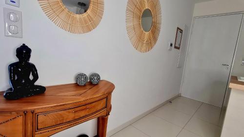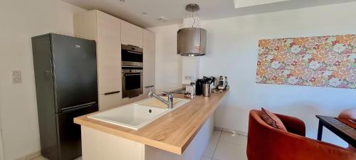 Appartement 1 Chambre      Featuring a private entrance, this air-conditioned apartment comprises 1 living room, 1 separate bedroom and 1 bathroom with a walk-in shower and a hairdryer. In the kitchen, guests will find a stovetop, a refrigerator, a dishwasher and kitchenware. The unit features a washing machine, sea views, a terrace and wine/champagne is provided for guests. The unit offers 2 beds. | ||