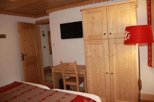![]() ![]() ![]() ![]() Décorée dans un style chalet, cette chambre est composée d'une salle de bains avec baignoire, de chambres parentales et d'un coin couchage en mezzanine pour les enfants de plus de 5 ans. Il possède également un balcon orienté au sud. La mezzanine est accessible par une échelle de meunier. Cette chambre est recommandée pour 2 adultes et 2 enfants âgés de 6 à 12 ans. |
