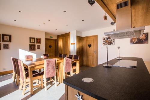 ![]() ![]() ![]() ![]() ![]() ![]() ![]() ![]() ![]() ![]() ![]() ![]() ![]() ![]() Idéalement situé au cœur du village de Praz-sur-Arly, à côté de l'hôtel La Griyotire, ce chalet offre une retraite confortable dans les montagnes. Le chalet se trouve à proximité des commerces et à seulement 500 mètres des pistes de ski. Cet hébergement en duplex fait 200 m2. Au rez-de-chaussée, vous trouverez un salon, une terrasse, une cuisine entièrement équipée et une chambre double avec une salle de bains privative adaptée aux personnes à mobilité réduite. Au premier étage, vous trouverez un coin repas avec une grande table et une cheminée, 2 chambres doubles avec salles de bains privatives et un dortoir pouvant accueillir 12 personnes avec sa propre salle de bains privative. Vous aurez également accès au spa, à la salle de massage et à la piscine intérieure adjacente au chalet. Un prépaiement de 30 % est requis pour garantir votre réservation. Un dépôt de garantie de 1 000 EUR vous sera demandé à l’arrivée afin de couvrir les éventuels frais supplémentaires. Ce dépôt de garantie vous sera intégralement remboursé lors de votre départ, sous réserve d’un état des lieux satisfaisant de l’hébergement. |